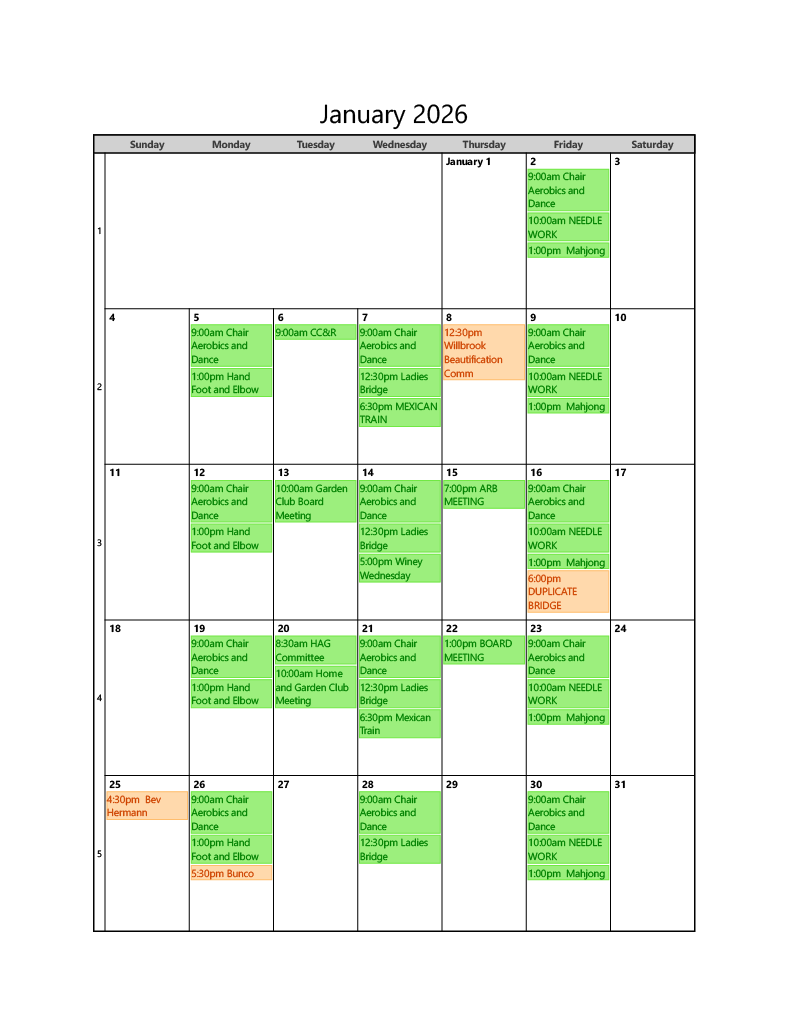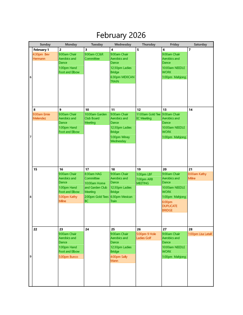 CLUB HOUSE CALENDAR